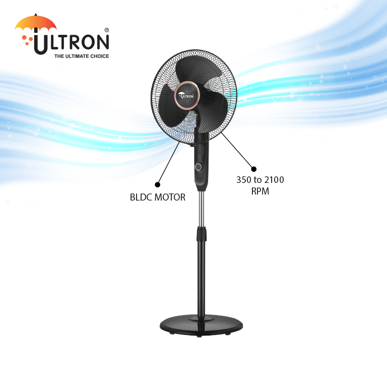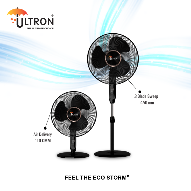 The Ultron BLDC PF – Eco Storm is a smart and energy-efficient pedestal fan with latest BLDC motor technology. With a 16-inch blade diameter, it provides powerful airflow while consuming minimal electricity. Its 2-in-1 design makes it versatile for use as both a pedestal and a table fan, catering to your cooling needs in any setup.