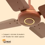 The Ultron CF – Alpha Nano is the perfect compact ceiling fan for small spaces. With a sleek design and 24-inch blades, this fan ensures efficient air circulation even in the coziest areas of your home. Its minimalist design seamlessly complements modern interiors, offering a balance of style and functionality.