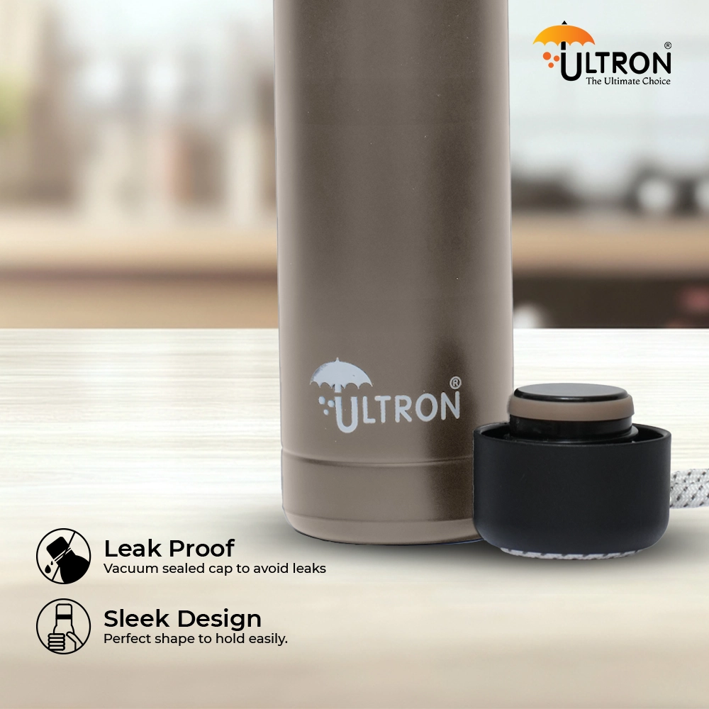 Combining performance and style, this water bottle features advanced double-wall vacuum insulation for superior temperature retention. Its ergonomic, lightweight design ensures easy carrying, while the leak-proof lid provides mess-free convenience. Perfectly sized at 500 ml, the Ultron Aqua Sports bottle fits seamlessly into gym bags, backpacks, or cup holders, making it an ideal companion for your active day.
