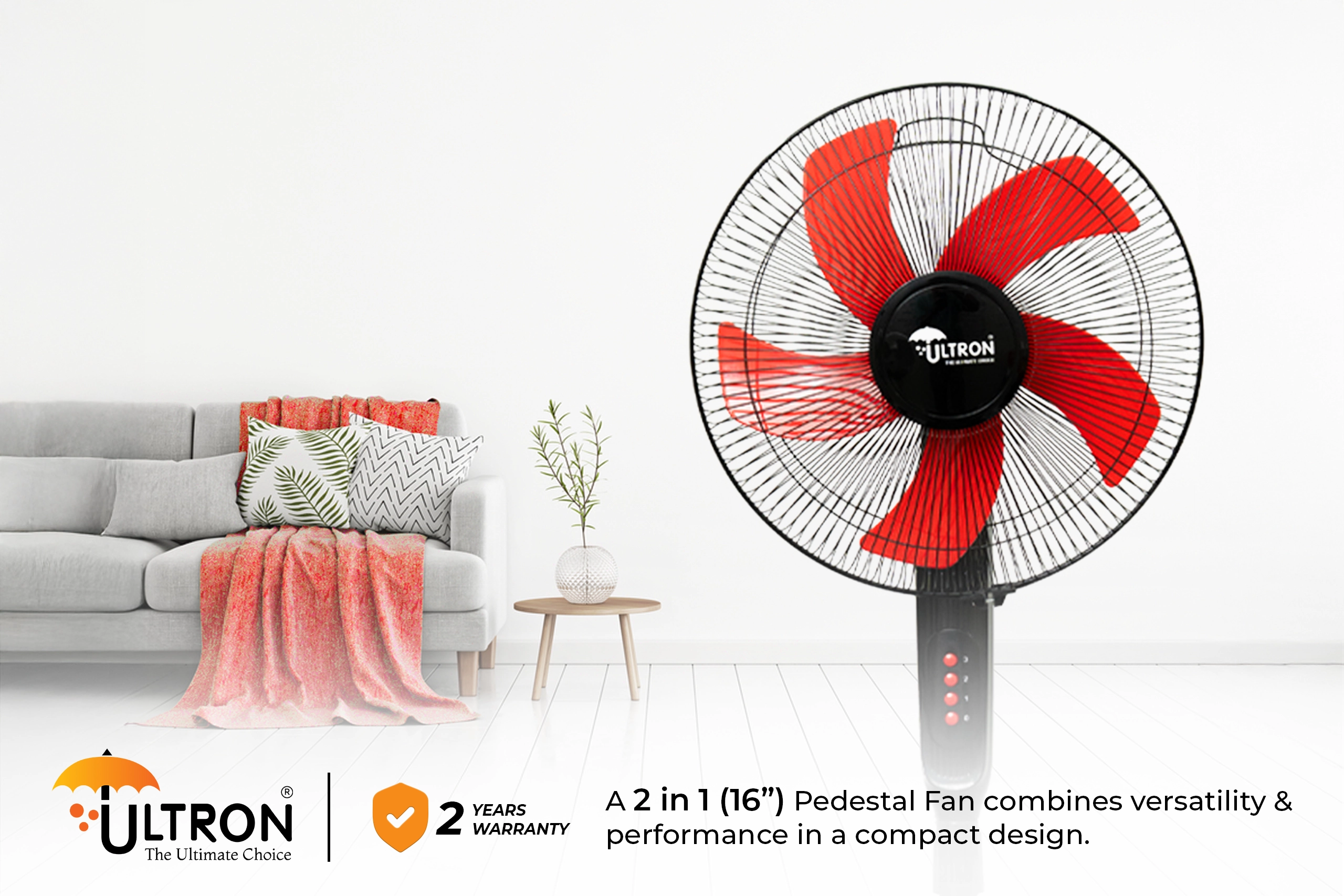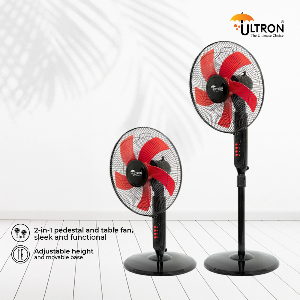The Ultron Regular PF – Fivesta – 2 in 1 (16″) Pedestal Fan combines versatility and performance in a compact design. Equipped with a 16-inch blade size, this fan delivers efficient airflow, perfect for homes and offices. The unique 2-in-1 functionality allows it to be used as both a pedestal and a table fan, providing flexibility to suit various settings. With its modern design and powerful performance, it ensures you stay cool and comfortable all day.