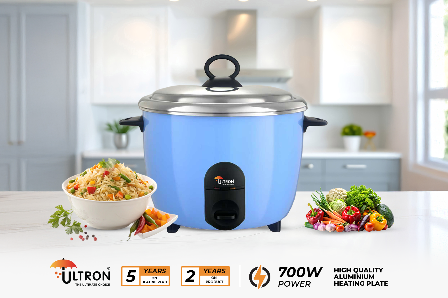 Designed for everyday meals, this sturdy stainless-steel cooker helps you prepare rice, dal, biryani, and steamed dishes quickly and evenly. Its durable body ensures long-lasting performance, while the user-friendly design makes cooking simple for anyone. With steady heat distribution and reliable functionality, the ULTRON Cook Mate SS RC is a perfect fit for busy kitchens and daily use!