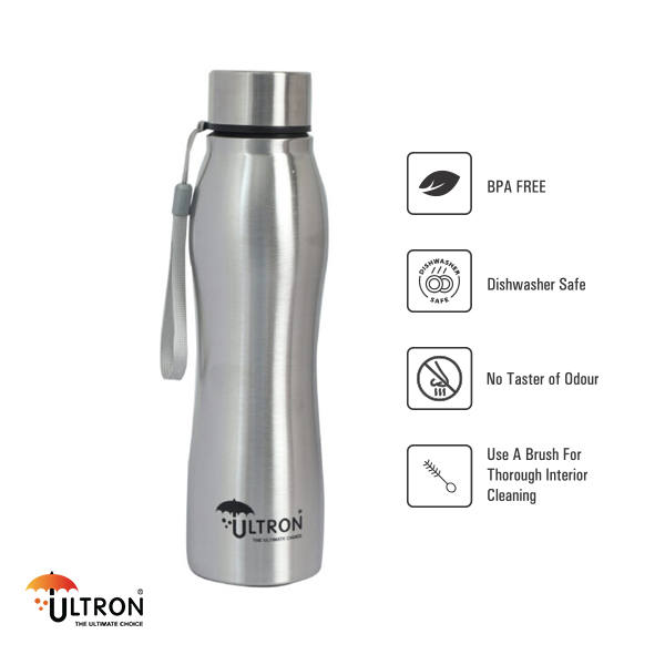 Crafted from durable stainless steel, this bottle combines practicality with style. Its ergonomic design ensures a firm grip, while the wide-mouth opening makes filling and cleaning effortless. With a generous 1000 ml capacity, the Ultron Aqua Fresh bottle is perfect for staying hydrated on the move. Choose sustainability and durability with this reusable, single-wall water bottle.