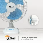 Beat the heat instantly with the Ultron White Thunder Table Fan! Engineered for high-speed airflow, this 16-inch, 3-blade fan delivers an intense cooling experience to combat even the hottest days. Whether you need a quick breeze while working, sleeping, or relaxing, this powerful fan ensures instant comfort with its robust motor and efficient air circulation.