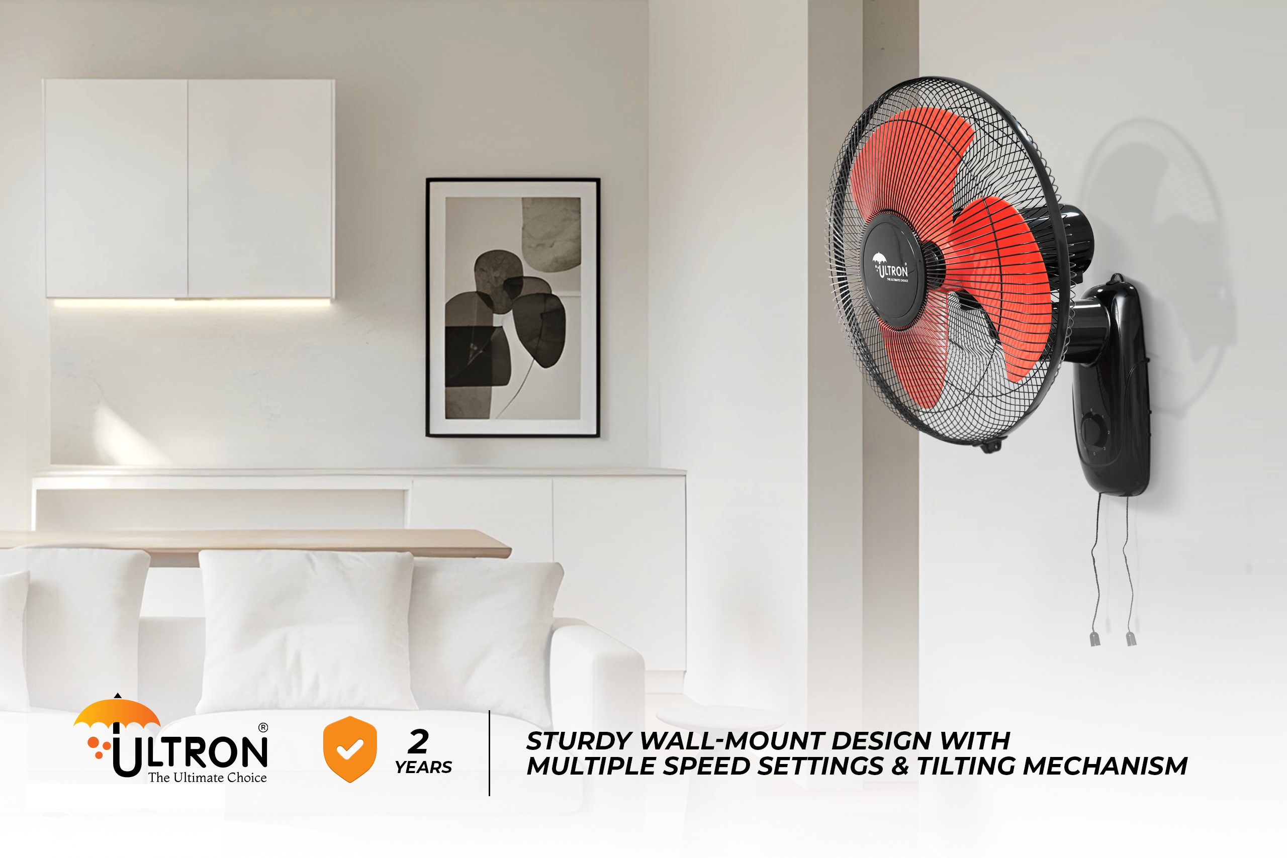 Ultron WF – black thunder wall fan delivers powerful airflow while maintaining a sleek and modern design. With its 16 inch blade size, it provides optimal air circulation, making it perfect for both small and medium sized rooms. The fan is designed to be energy-efficient while offering  strong, consistent performance. Ideal for homes or offices, the black thunder wall fan keeps you cool and comfortable during the hottest days.